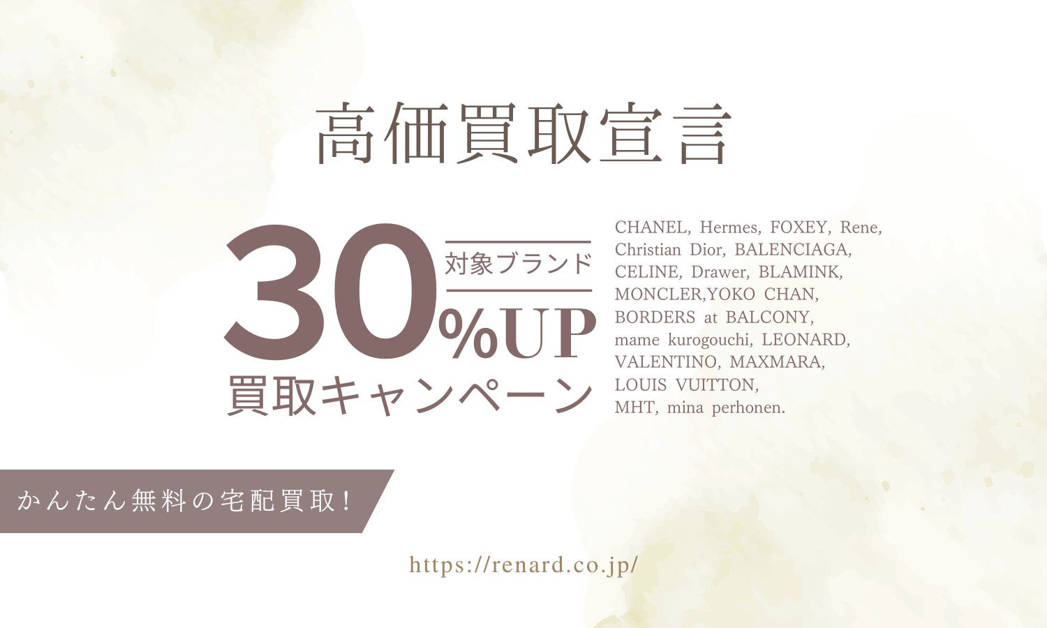 7/1〜7/31までの宅配買取ご利用にて対象ブランドの買取査定額を30%アップにてお見積りいたします!